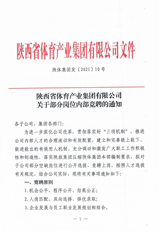 陜體集團關于部分崗位內部競聘的通知