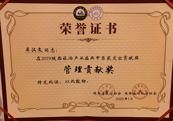 1月7日,在陜西省旅游協會舉辦的陜西旅游產業盛典上陜西體育賓館榮獲陜西省旅游協會貢獻獎,陜西體育賓館執行總經理牟漢文榮獲陜西省旅游協會管理貢獻獎。