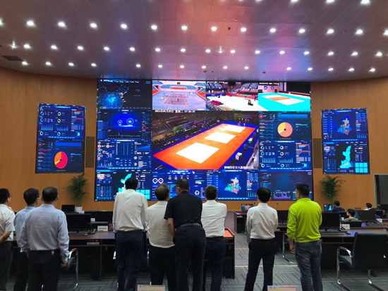 高志丹一行實(shí)地察看了廣播電視部區(qū)域(IBC總控調(diào)度中心、收錄、新聞制作區(qū)、融媒體指揮中心等)、信息技術(shù)部區(qū)域(賽事指揮中心、體驗(yàn)區(qū)、注冊(cè)中心),詳細(xì)了解了場(chǎng)館功能布局、辦公用地等試運(yùn)行情況。