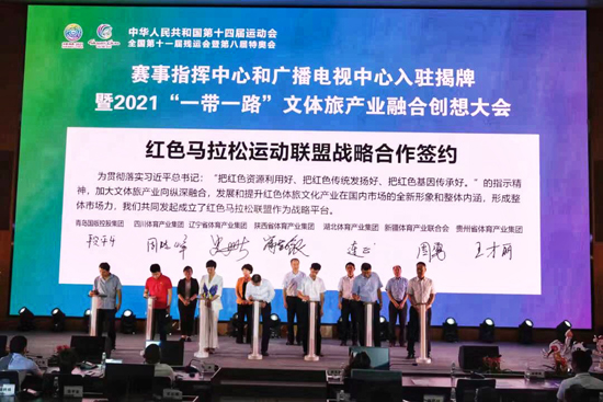 6月25日,在舉國上下熱烈慶祝中國共產黨成立100周年、十四運會開幕式進入倒計時81天之際,十四運會和殘特奧會賽事指揮中心和廣播電視中心入駐揭牌暨2021“一帶一路”文體旅產業融合創想大會在陜西國際體育之窗盛大開幕。來自十四運會和殘特奧會組委會、陜西省文旅廳、省體育局、省殘聯、西安高新區管委會、西安體育學院、省體育訓練中心和各運動項目管理中心、省體育科學研究所、各省市體育產業集團、阿里體育、壹體研究院等相關單位領導嘉賓出席會議。